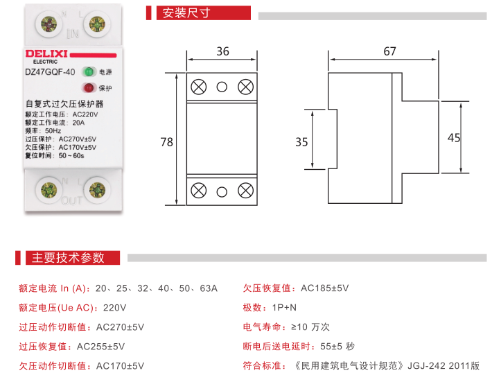 德力西電氣DZ47GQF自復式過欠壓保護器