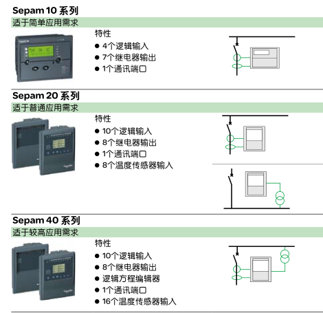 每個(gè)Sepam 系列均可提供針對(duì)目標(biāo)應(yīng)用所需的所有功能: