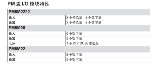 和1個24V內(nèi)部電源。PM8M22則有2個數(shù)字輸出和2個數(shù)字輸入。