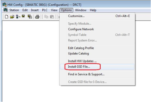 打開 Step7 硬件組態編輯器,選擇“Options”菜單下的“Install GSD file”: