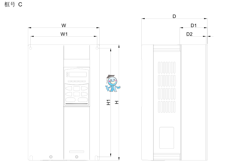 為了使冷卻循環(huán)效果良好,必須將變頻器安裝在垂直方向,因變頻器底部裝有散熱裝置,其上下左右與相鄰的物品和擋板(牆)必須保持足夠的空間。如下圖所示: