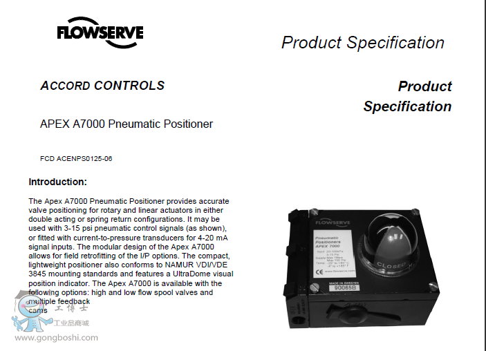 美國福斯Flowserve 模擬定位器 Accord APEX A7000