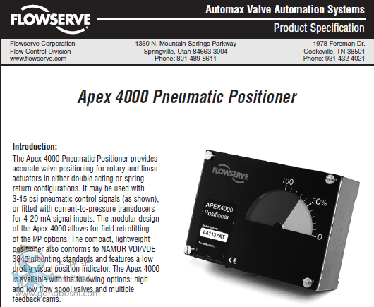 美國福斯Flowserve模擬定位器-Apex 4000