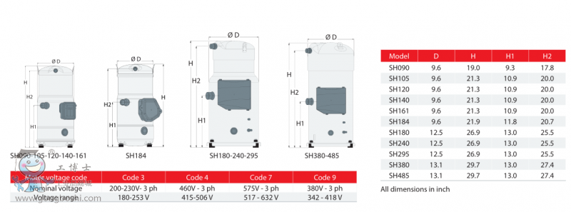 Danfoss Scroll compressors SH series R410A-60HZ