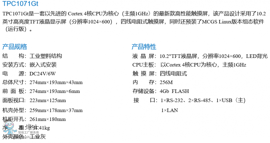 昆侖通態(MCGS)Gt系列TPC1071Gt|產品資料