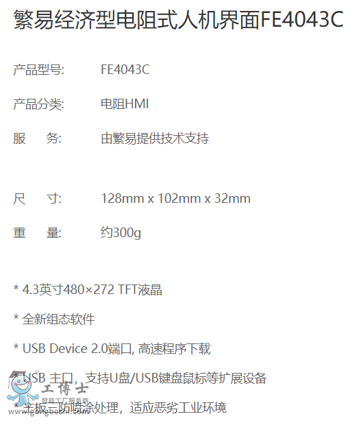 繁易(FBox)電阻式觸摸屏FE4043C|產品資料