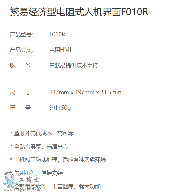 繁易(Fbox)經濟型電阻式觸摸屏F010R|產品資料
