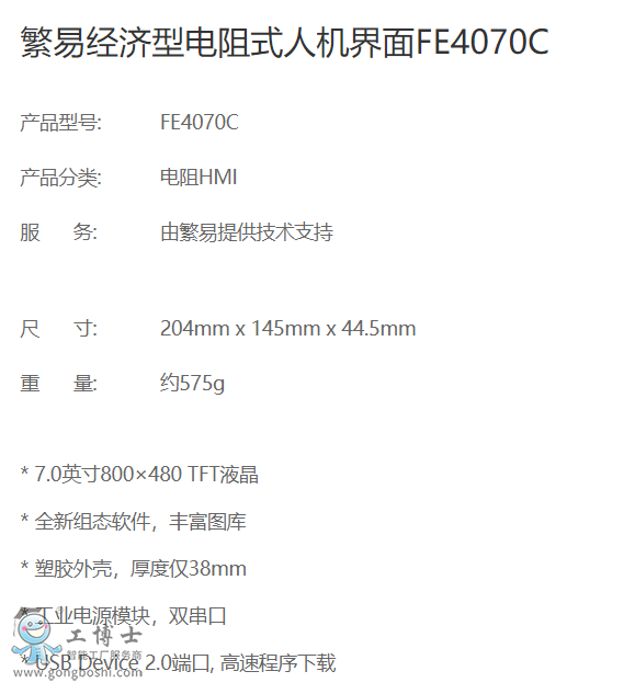 繁易(Fbox)經濟型電阻式觸摸屏FE4070C|產品資料