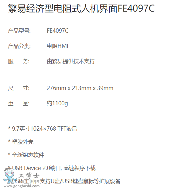 繁易(Fbox)經濟型電阻式觸摸屏FE4097C|產品資料