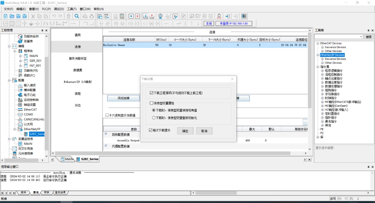 在協議選擇框中選擇“EtherNET/IP 配置”,點擊確認按鈕。
