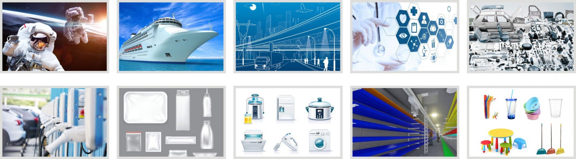 航空、航天、軍工、船舶、汽車、建筑,城市基建、化工及原材料、電子信息及電器、電源及連接器、包裝終端用戶(包括食品、飲料、餐盒、乳業、日化等)、通用塑料制品、照明及LED、醫療、模具、高速包裝、塑料彩印、橡膠制品、電線電纜、其他(玩具,文教,體育用品及工具)等上下游配套行業買家