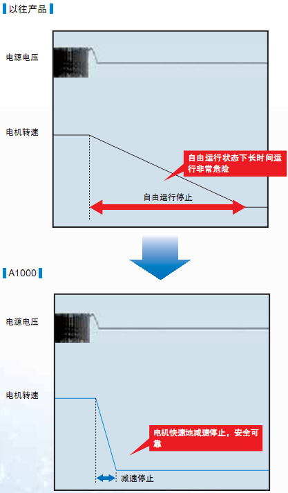 | ■ 配備停電時電機不自由運行,而能快速安全減速停止的KEB(Kinetic Energy Back-up)功能 | |