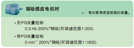 | ■ 使用高性能電流矢量控制,感應電機也能實現高起動轉矩 |