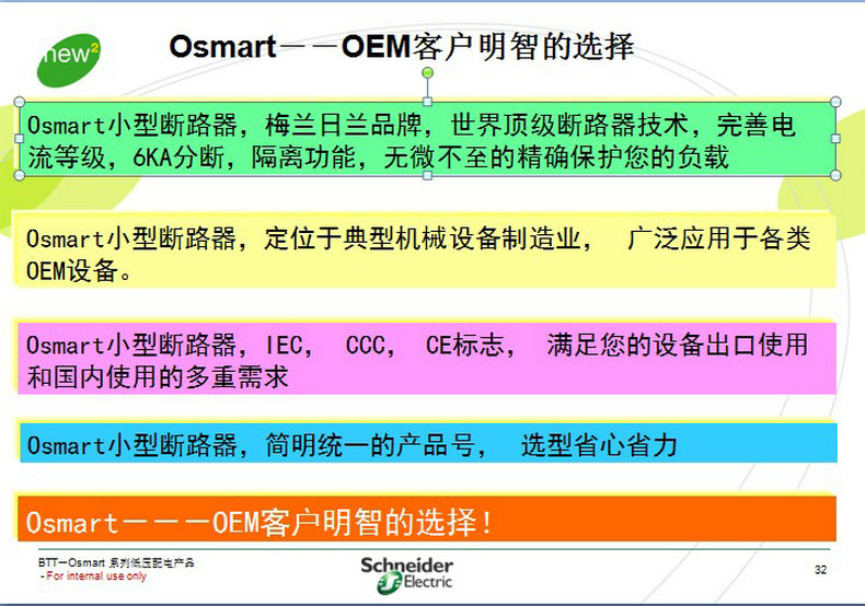 應用范圍:osmart系列小型斷路器主要用于OEM各種工業設備和工業控制柜的保護,不適用于建筑領域低壓配電系統的保護。