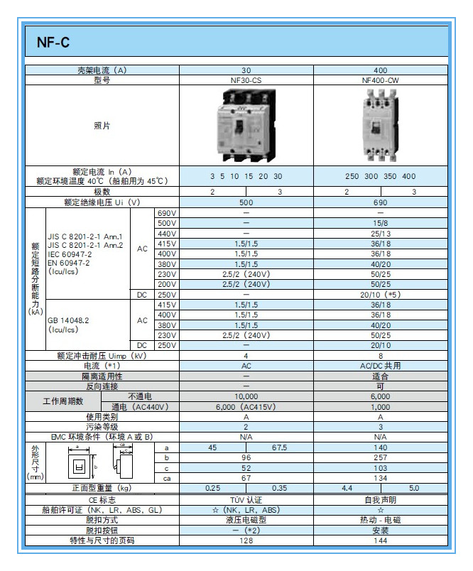 具體信息:NF400-CW  3P 400A 為例】