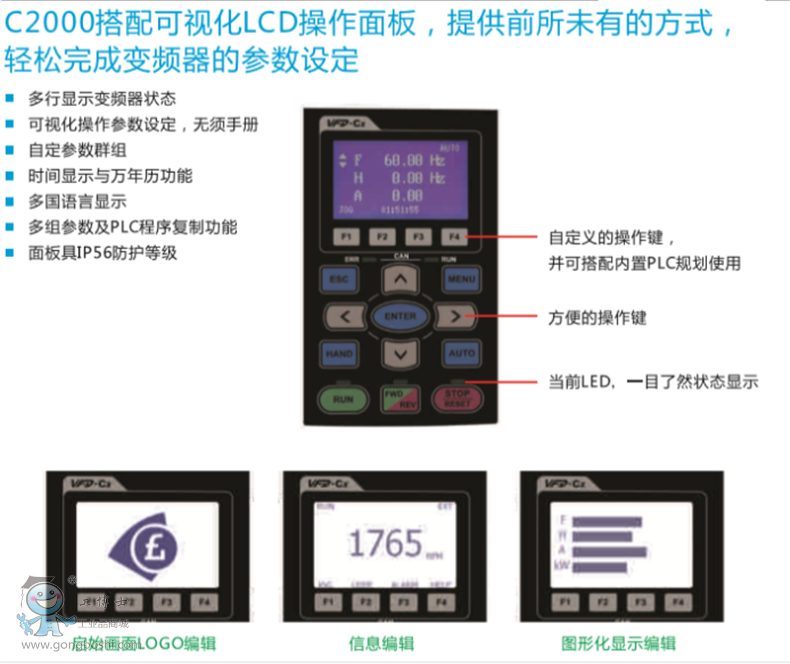▲ 內置CANopen現場總線及Modbus,并可選購:DeviceNet,Profibus,Modbus TCP and EtherNet-IP