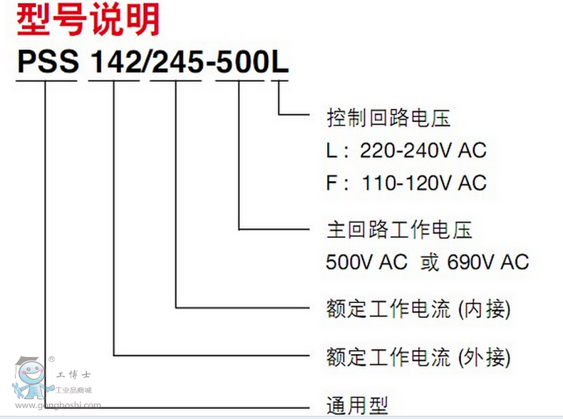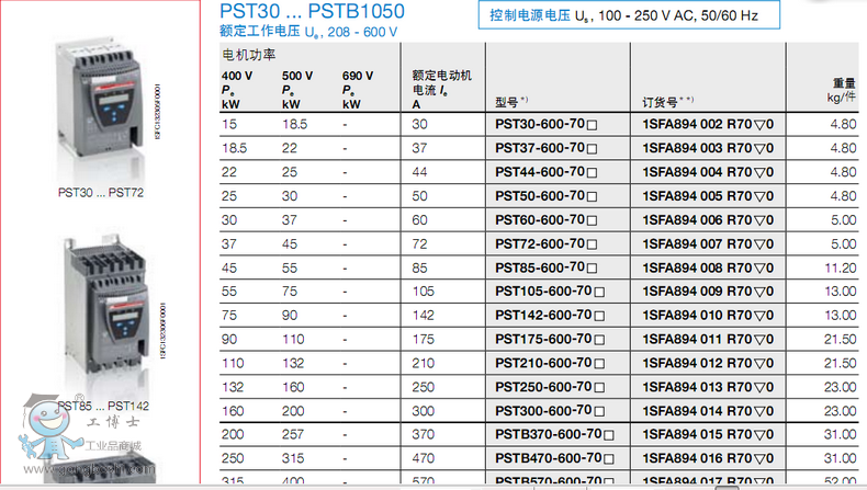PSS44/76-500L,ABB軟起動器通用型PSS系列,適用于常規起動,脫扣級別10,外接,主回路電源電壓范圍為208-690VAC,主回路工作電壓為500VAC,400V下的額定功率是22KW,額定電流44A,環境溫度40°C,額定控制電壓220-240VAC,50/60Hz。