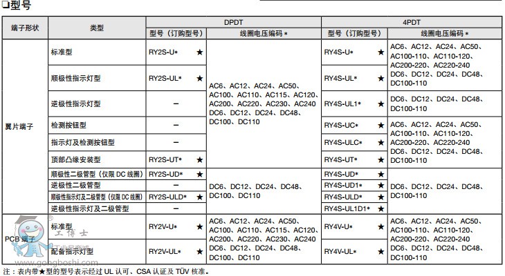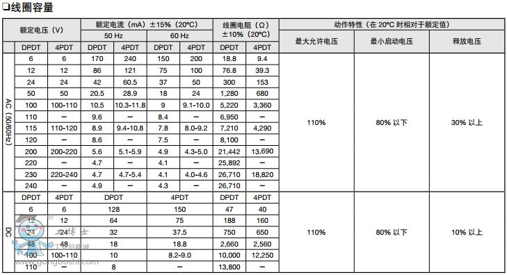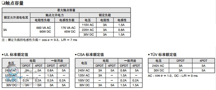 DPDT 及 4PDT、3A 觸點具備雙分叉型觸點。