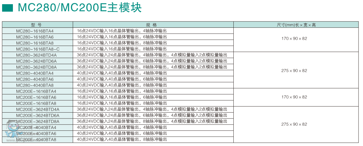 麥格米特運動型可編程控制器MC280、MC200E系列: