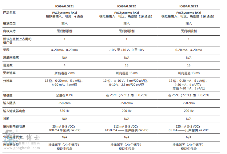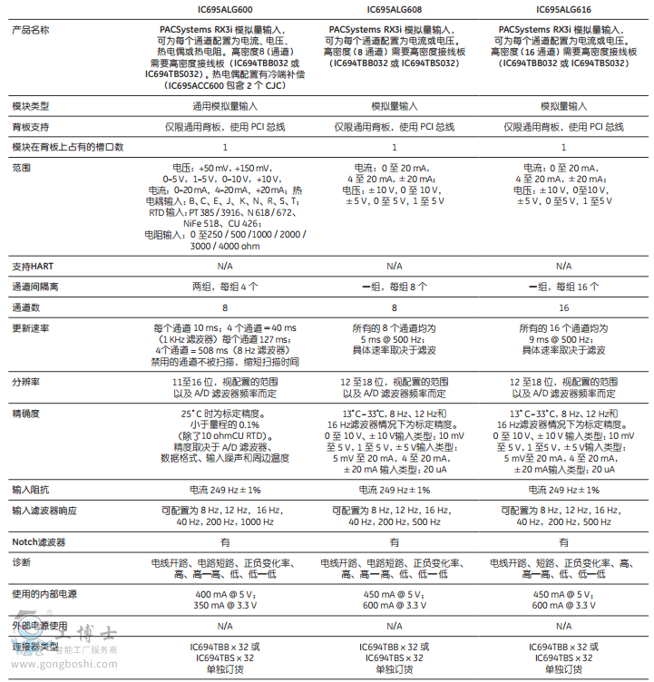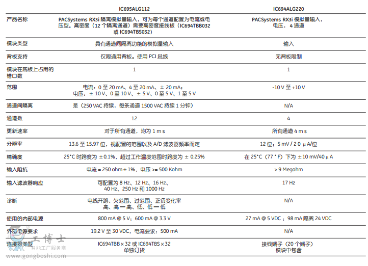 模擬量模塊規(guī)格: