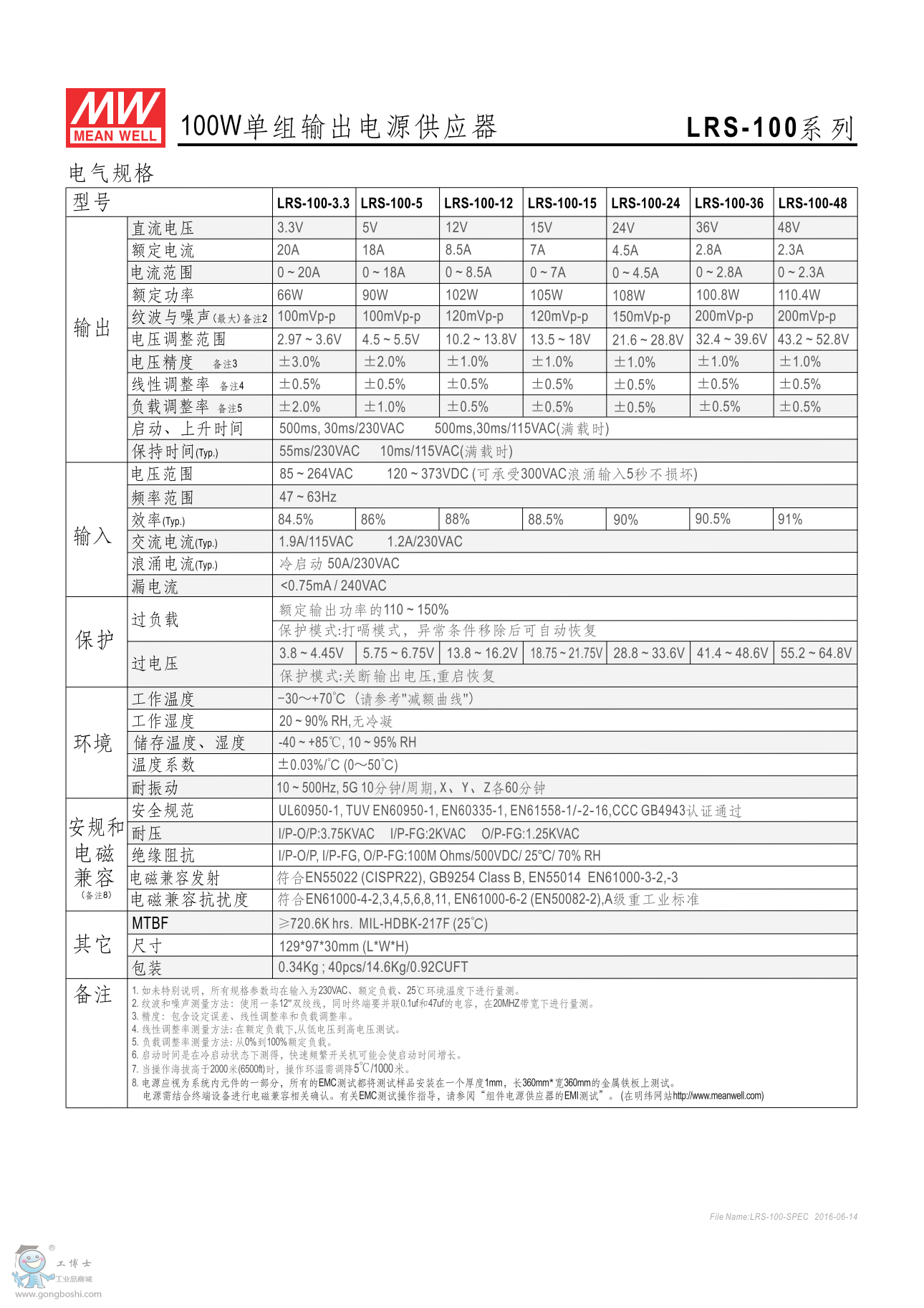 明緯超薄開關(guān)電源LRS-100-36 36V2.8A