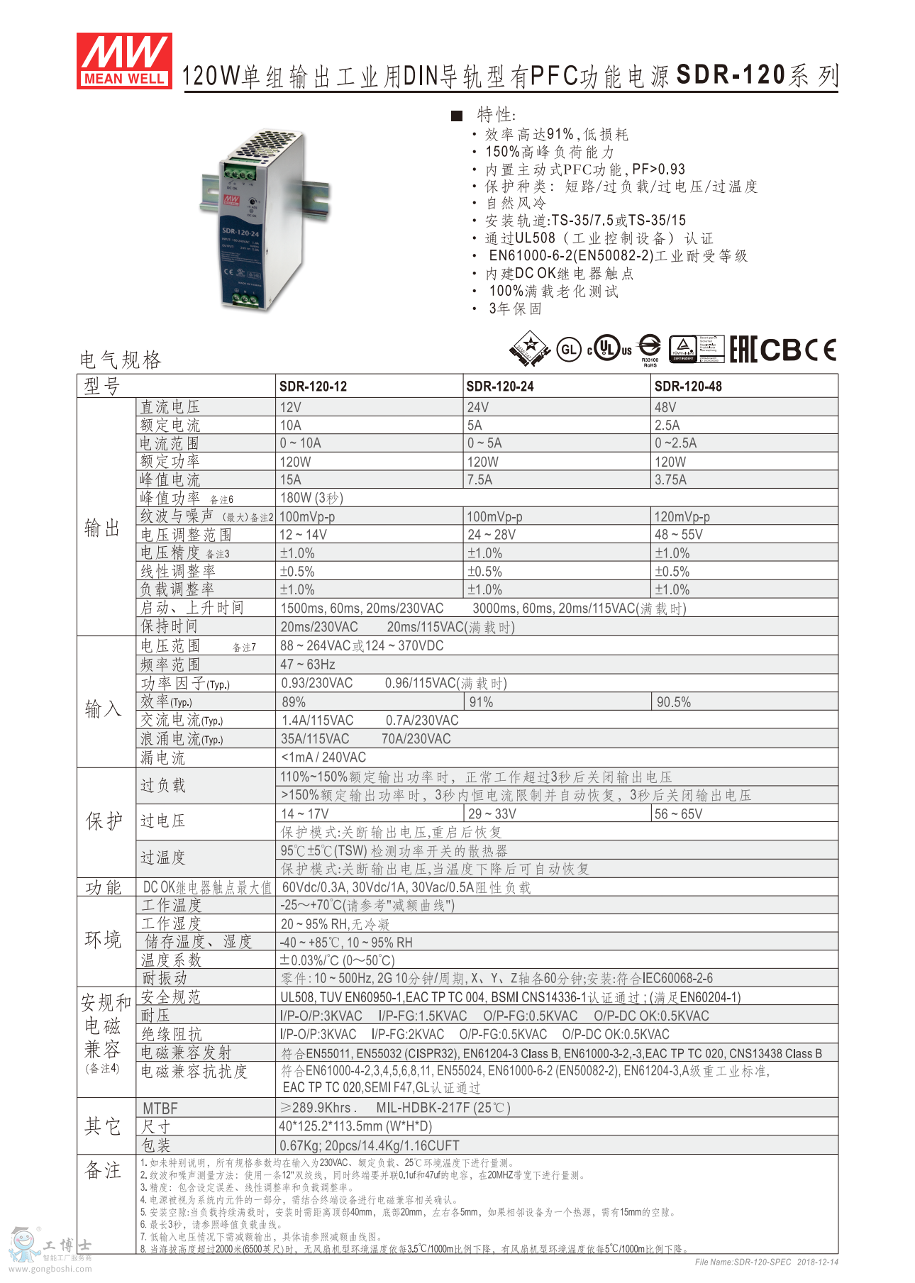 內(nèi)建主動(dòng)式功率因子矯正功能(active PFC) (SDR-75除外)