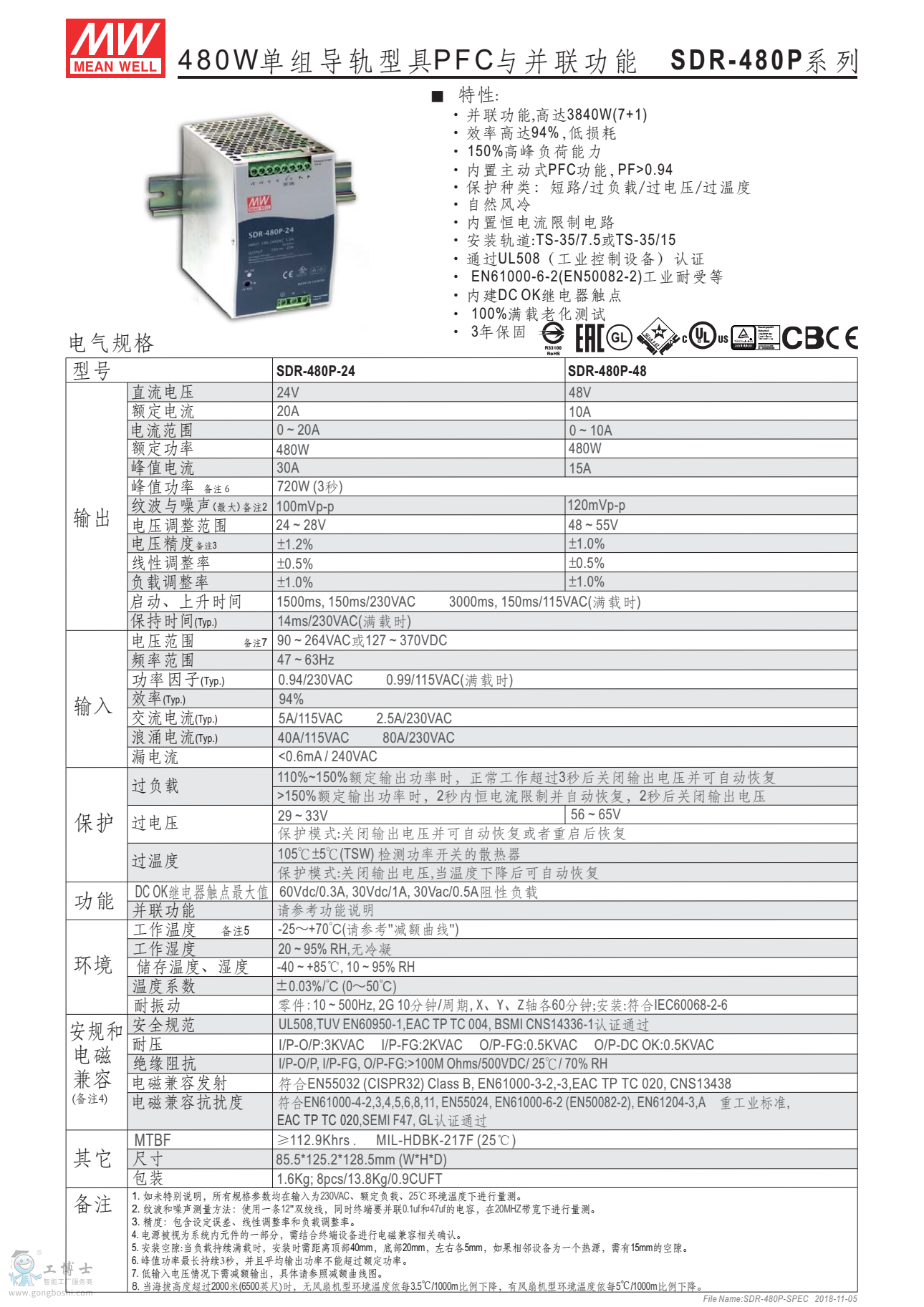 內建主動式功率因子矯正功能(active PFC) (SDR-75除外)