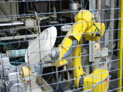 Apulum是歐洲著名的瓷器制造商,擁有40多年的歷史,其生產(chǎn)的餐具、杯具、花瓶等高品質(zhì)瓷器廣受歡迎。為了滿足日益增長的產(chǎn)量需求,從2014起,Apulum引入FANUC機器人,實現(xiàn)了對瓷器的自動化打磨,并大幅提升了生產(chǎn)的效率和質(zhì)量,使97%的成品達到A+級品質(zhì),與傳統(tǒng)手工生產(chǎn)相比提高了近10%。