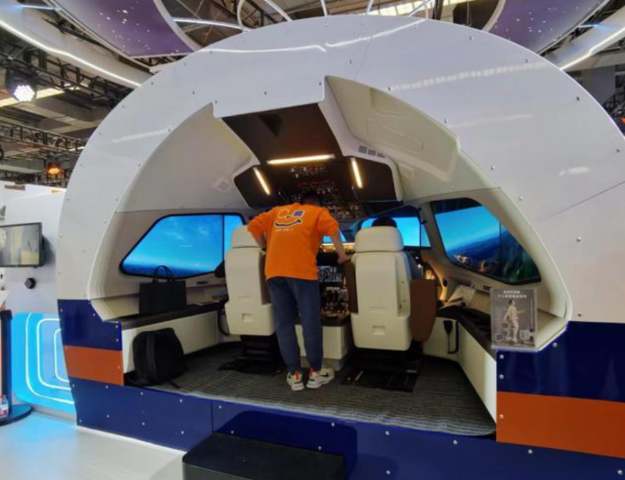 在展館現場,一個飛行模擬艙吸引了眾多觀眾排隊體驗。這臺模擬艙1∶1還原了國產大飛機駕駛艙,人們可以在該模擬艙中真實體驗飛行員駕駛訓練的場景。