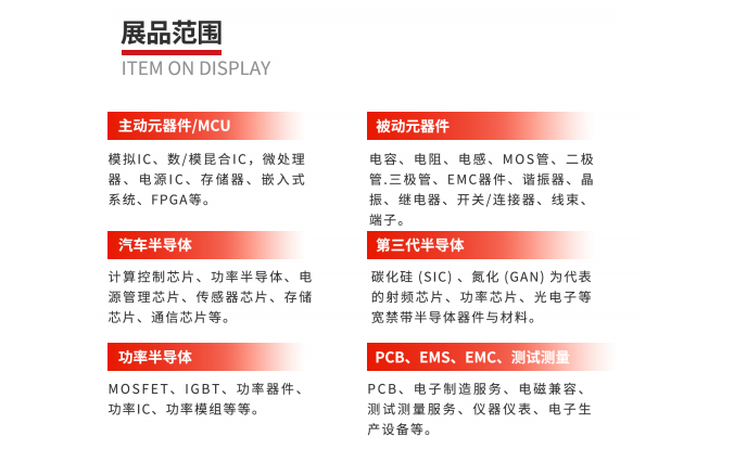 全新升級(jí)亮點(diǎn)展區(qū):EMS電子制造服務(wù)專區(qū)、半導(dǎo)體封測產(chǎn)線展示區(qū);整合各類新品、締結(jié)貿(mào)易契機(jī)、打卡市場:集中展示半導(dǎo)體/IC、被動(dòng)元件、集成電路、傳感器等產(chǎn)品。
