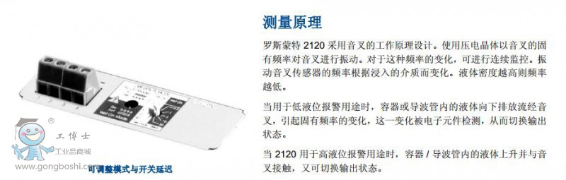 羅斯蒙特2120 采用音叉的工作原理設(shè)計。使用壓電晶體以音叉的固