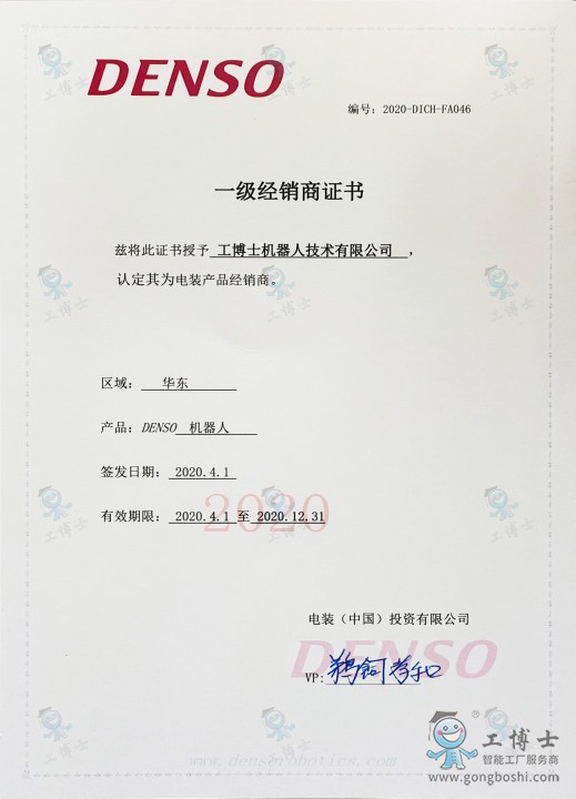 電裝DENSO機器人授權代理證書