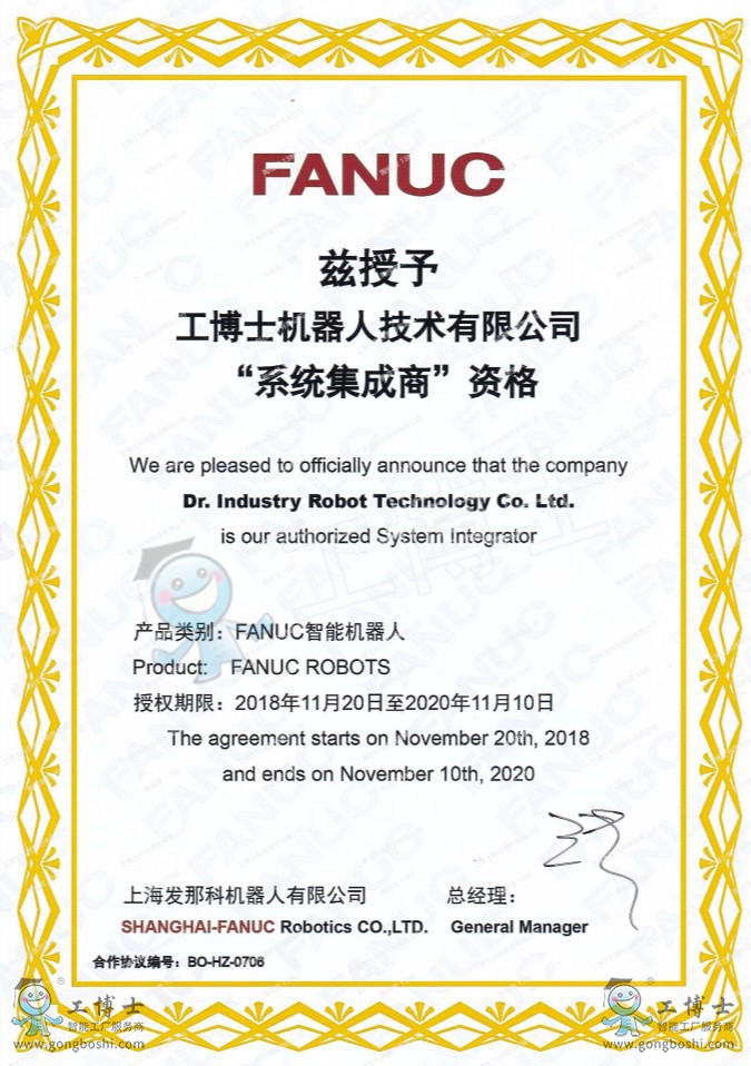 發(fā)那科FANUC機(jī)器人授權(quán)代理證書(shū)