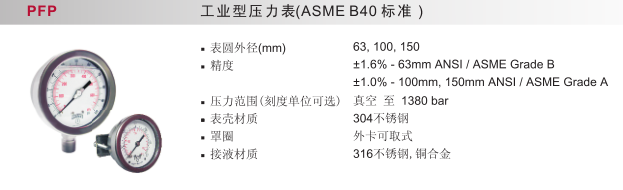 工業(yè)型壓力表(ASME B40標(biāo)準(zhǔn))PFP