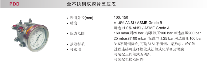 全不銹鋼雙模片差壓表PDD