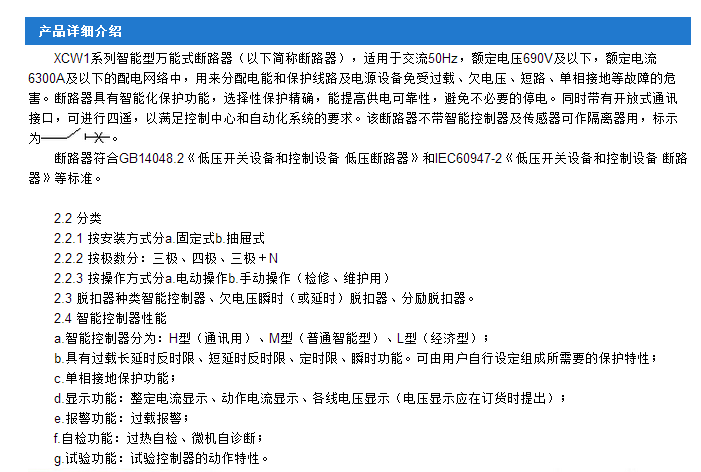 揚州新晨電器 XCW1系列智能萬能式斷路器