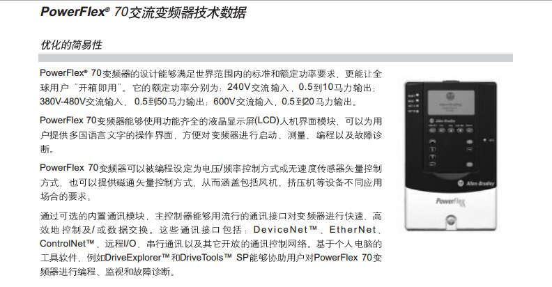 AB羅克韋爾PF70 20AB6P8A0AYNANC0