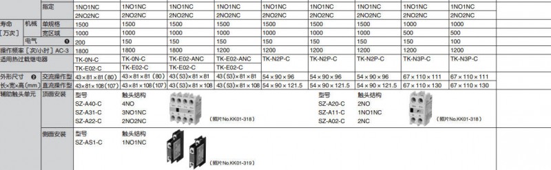 • 獨立設置熱過載繼電器單元接觸器規格