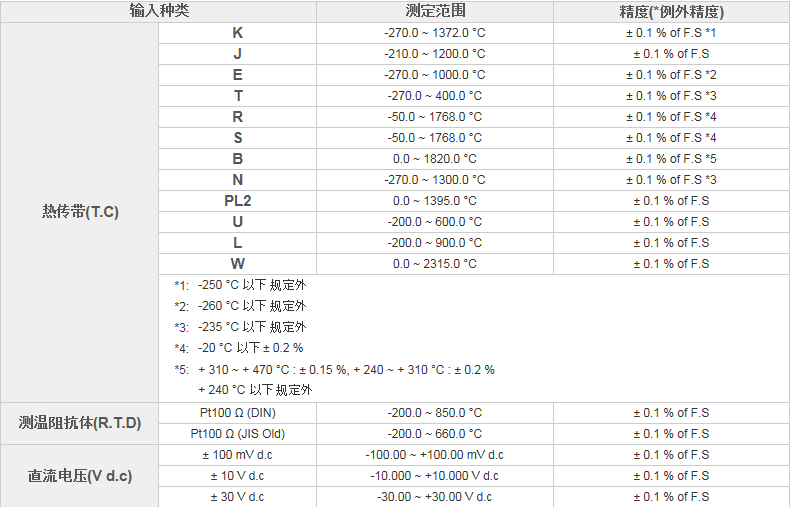 Θ輸入種類: 直流電壓:±100mV、±10V、±30V 直流電流:4-20mA (需并接250Ω) 熱電偶:K、J、E、T、R、S、B、N、PL2、U、L、W 測溫阻抗體:Pt100、JPt100 精度 滿刻度的±0.1% 顯示部分 顯示器 5.6”TFT 全彩液晶(分辨率320X234) 色系 每個通道12種色彩(背景顏色有黑色和白色可選擇)