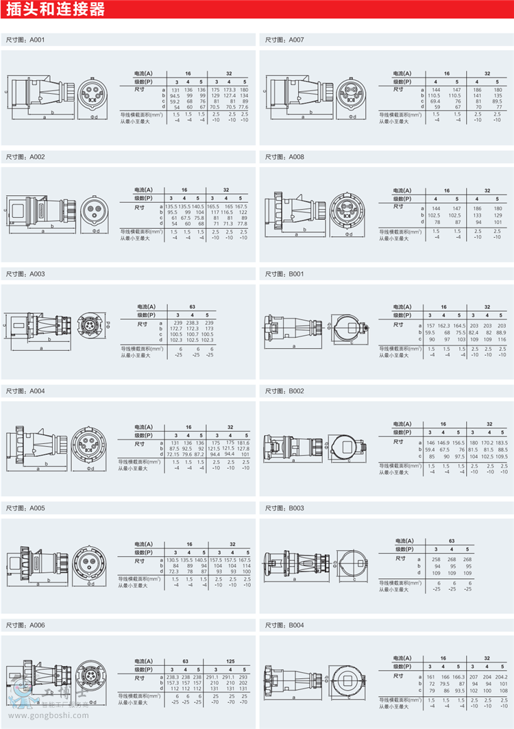 3、各種規(guī)格間的兼容性IEC和GB標(biāo)準(zhǔn)的16A產(chǎn)品兼容美國(guó)UL標(biāo)準(zhǔn)20A工業(yè)插頭插座產(chǎn)品IEC和GB標(biāo)準(zhǔn)的32A產(chǎn)品兼容美