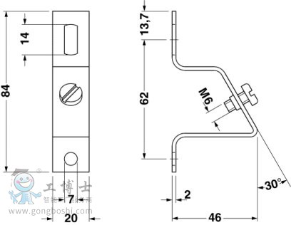 斜面支架,M6螺釘,用于以30°角固定DIN導(dǎo)軌,高度:46 mm