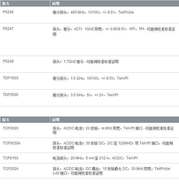 | MSO/DPO5000 | US $ 14,000 - US $ 28,300 | 350 MHz - 2 GHz | 16(選配) | 5 GS/s - 10 GS/s | 25M 點 - 125M 點 |
