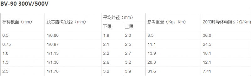 BV-90型不超過90℃,其他不超過70℃,敷設溫度不低于0℃。