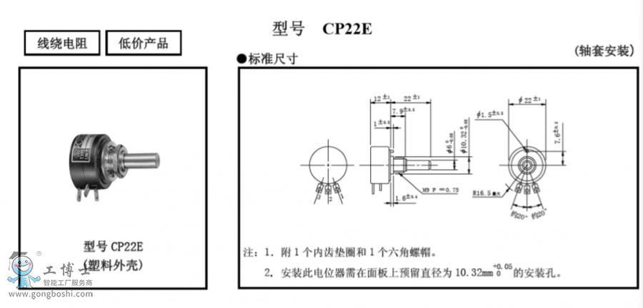 CP22E系列 單圈線繞電位器