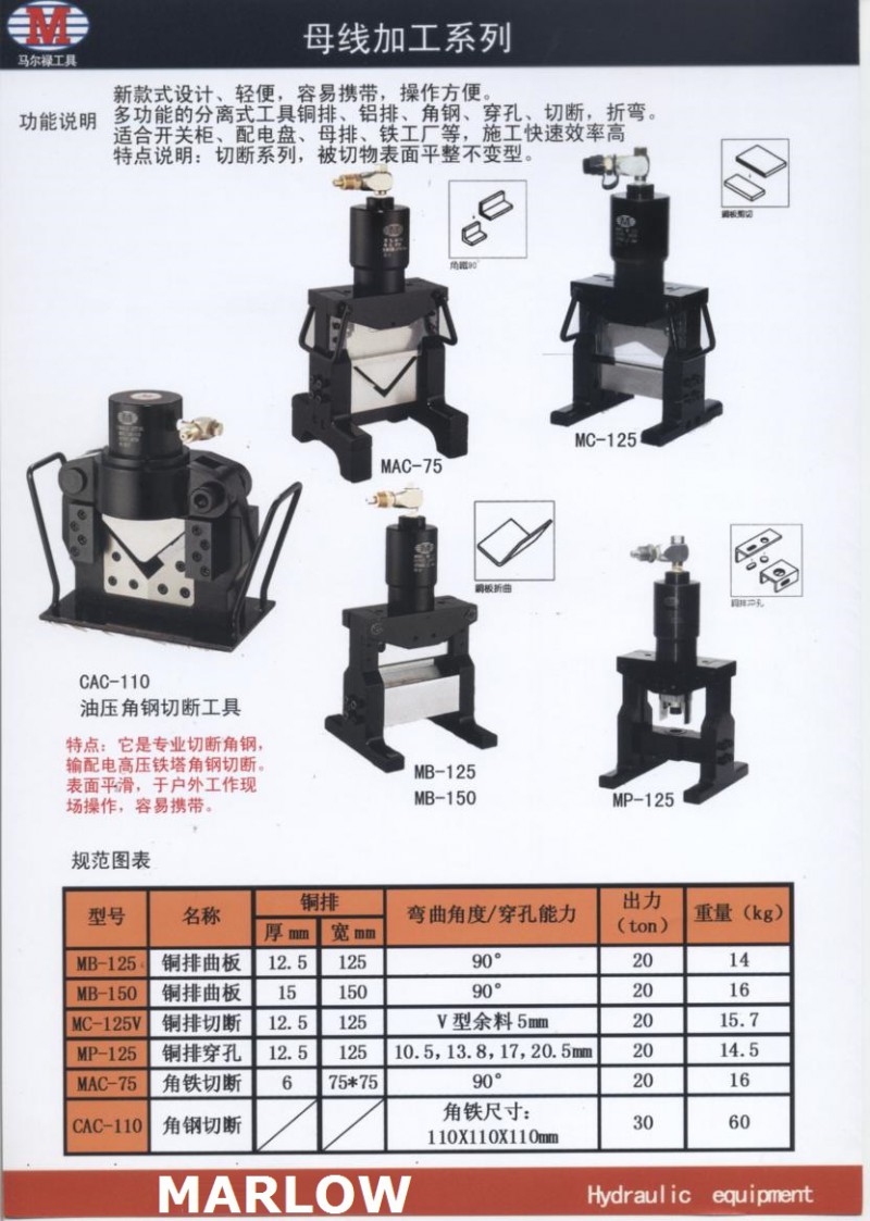 臺灣馬爾祿輕款便利攜帶分離式母排銅鋁板切斷機MC-125