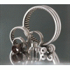 滾針軸承裝有細而長的滾子(滾子直徑D≤5mm,L/D≥2.5,L為滾子長度),因此徑向結構緊湊,其內徑尺寸和載荷能力與其它類型軸承相同時,外徑*小,特別適用于徑向安裝尺寸受限制的支承結果。根據使用場合不同,可選用無內圈的軸承或滾針和保持架組件,此時與軸承相配的軸頸表面和外殼孔表面直接作為軸承的內、外滾動表面,為保證載荷能力和運轉性能與有套圈軸承相同,軸或外殼孔滾道表面的硬度,加工精度和表面質量應與軸承套圈的滾道相仿。此種軸承僅能承受徑向載荷。