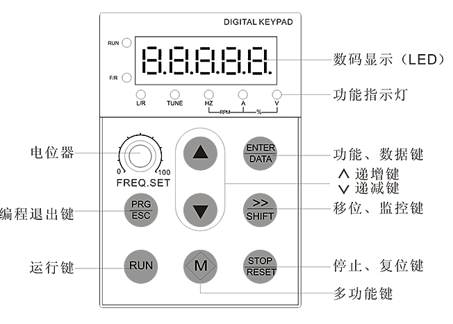 內(nèi)置簡易PLC功能,可實現(xiàn)8段速控制和擺頻控制功能