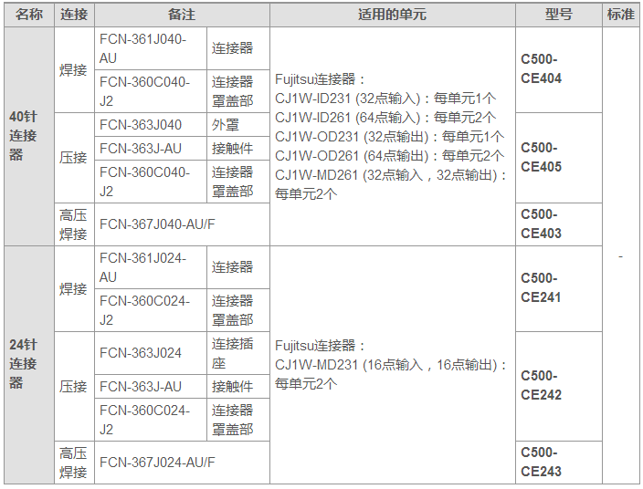 Fujitsu連接器(32點輸入、32點輸出、64點輸入、64點輸出、32點輸入/32點輸出和16點輸入/16點輸出單元)