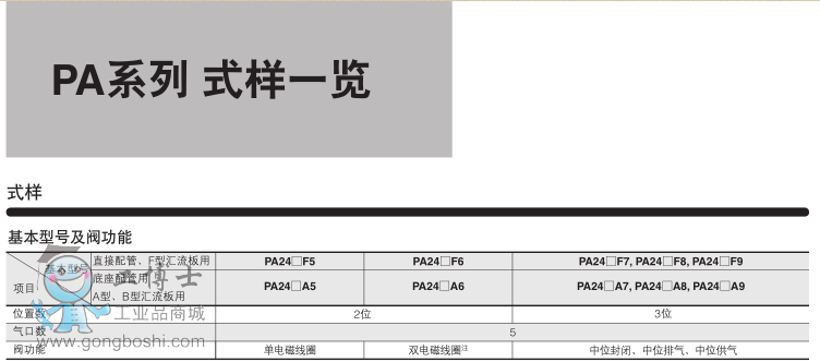 ●標(biāo)準(zhǔn)形狀的PA系列和新設(shè)計的閥與匯流板的PB系列