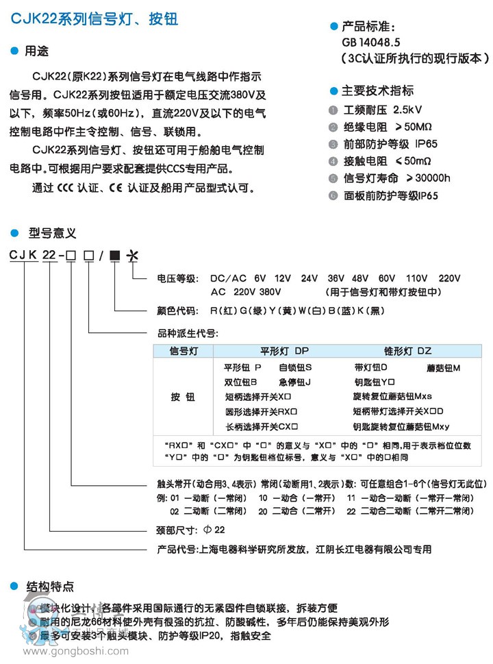 江陰長江CJK22系列信號燈、按鈕
